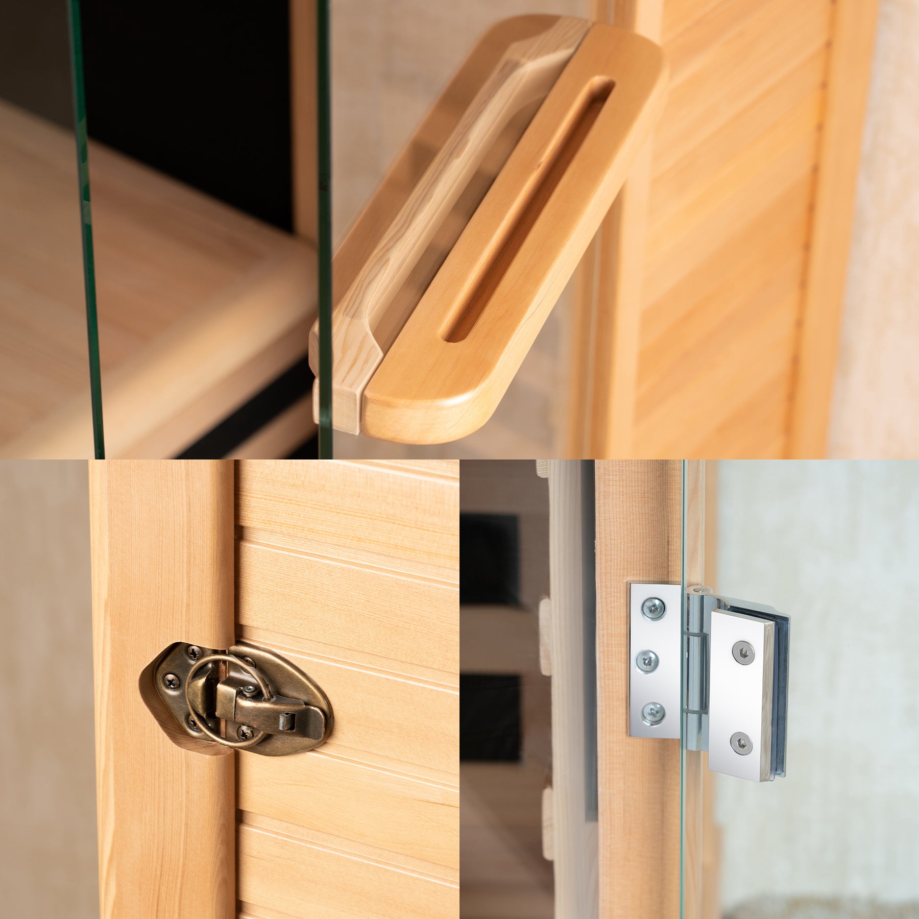 This sauna combines durable construction, space efficiency, and user-friendly features for convenient in-home use.