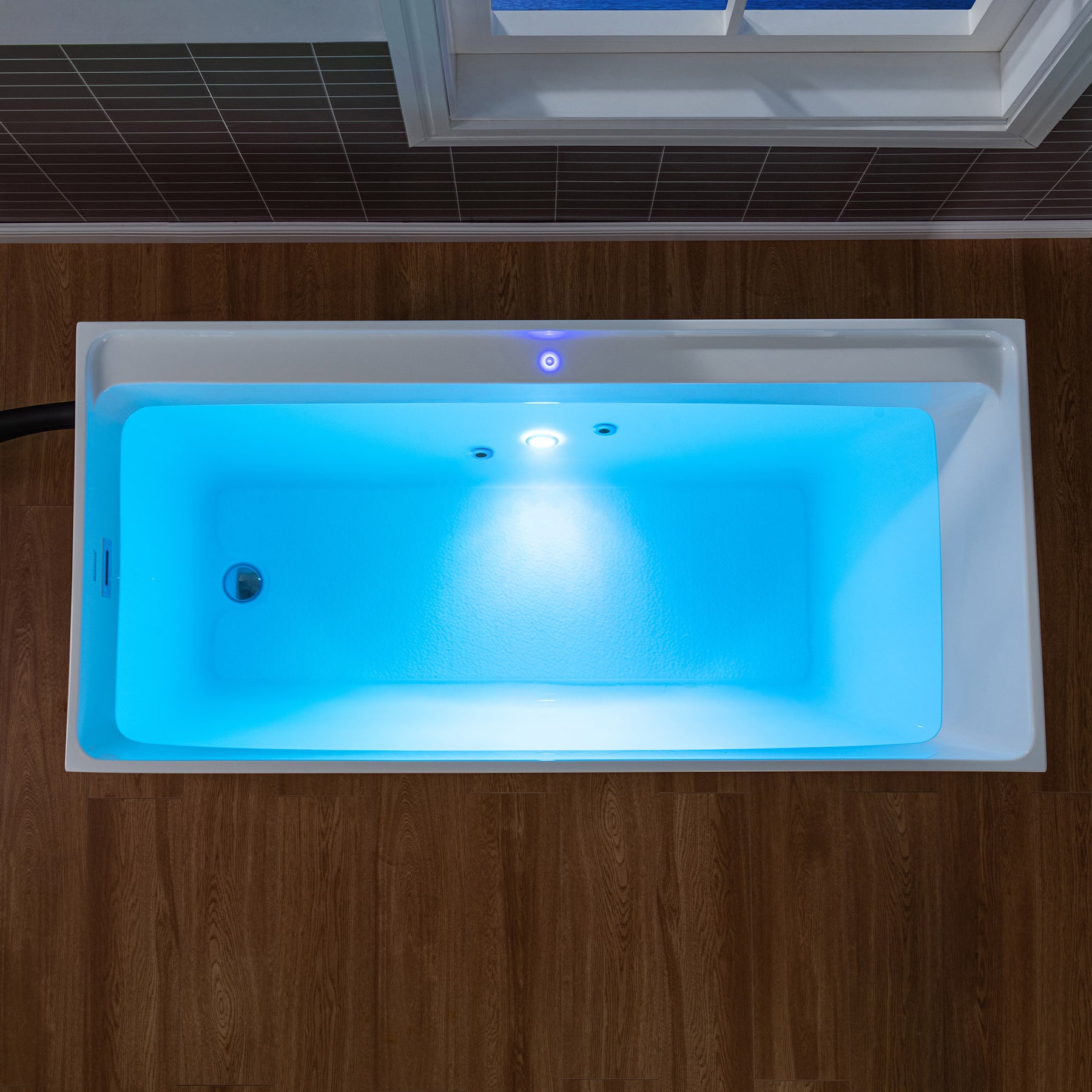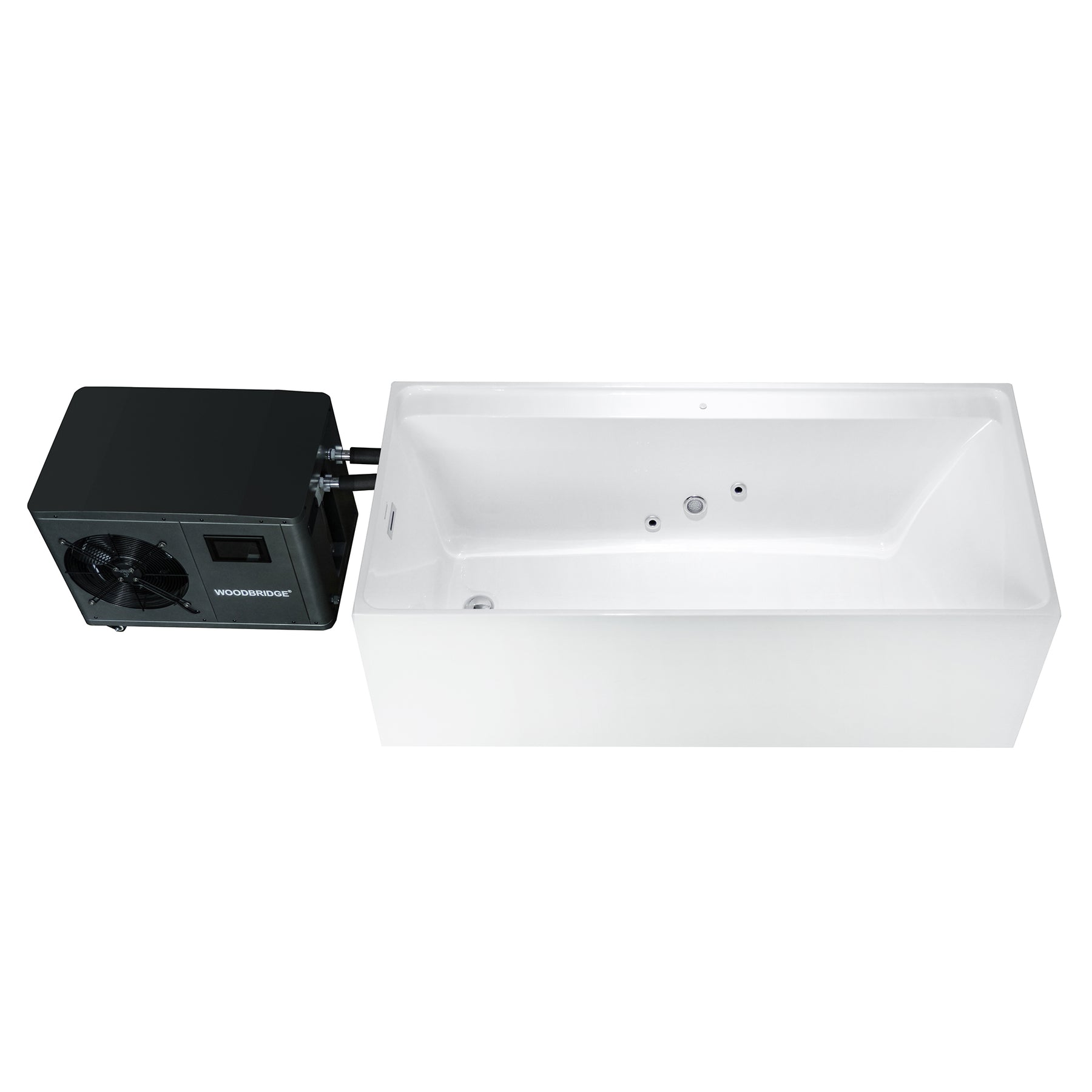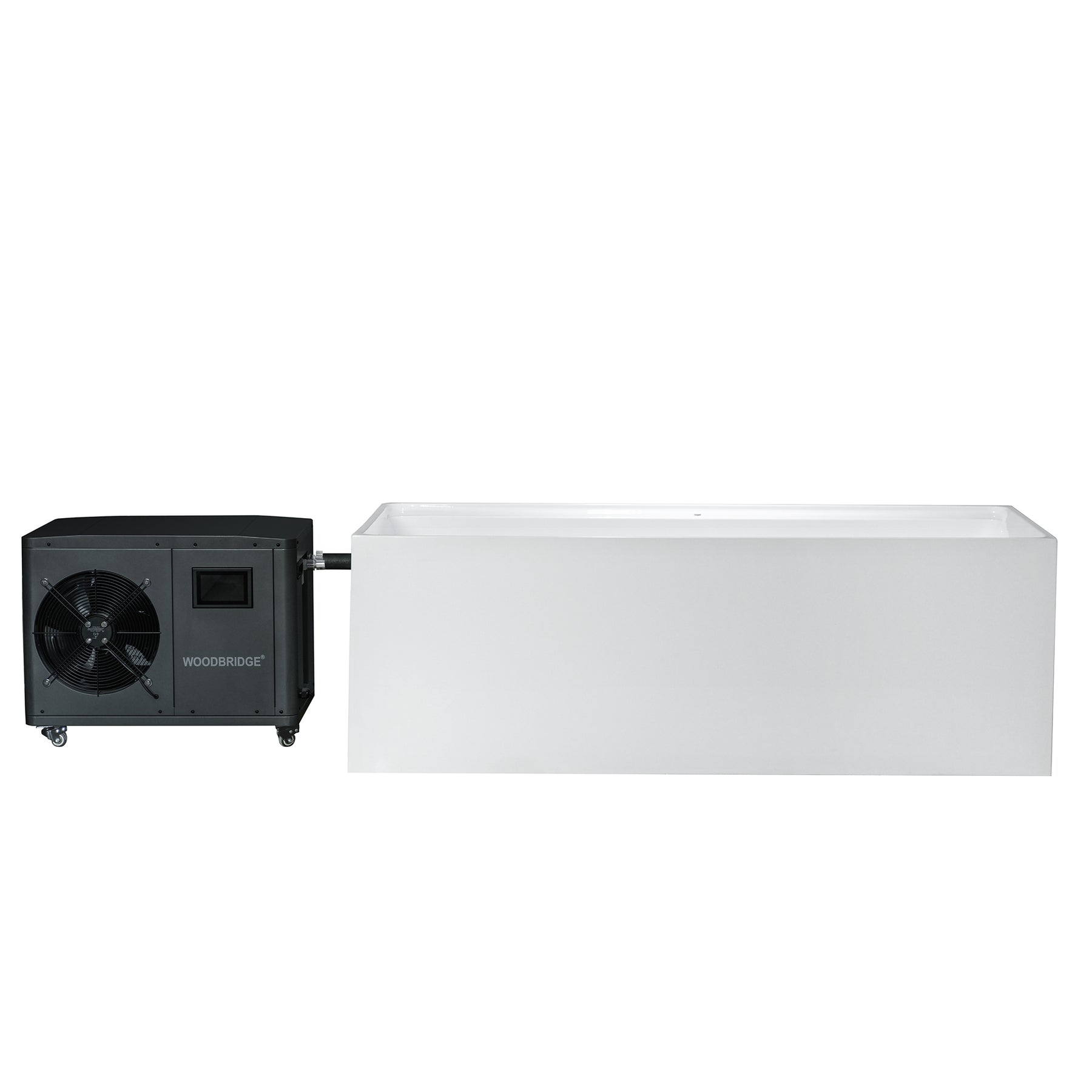 The Woodbridge 67" Cold Plunge Tub features a sleek acrylic design paired with a 1.3 HP chiller system capable of both cooling and heating water. The intuitive LCD touch screen allows precise temperature adjustments, and the insulated cover helps maintain water temperature for indoor or outdoor use.