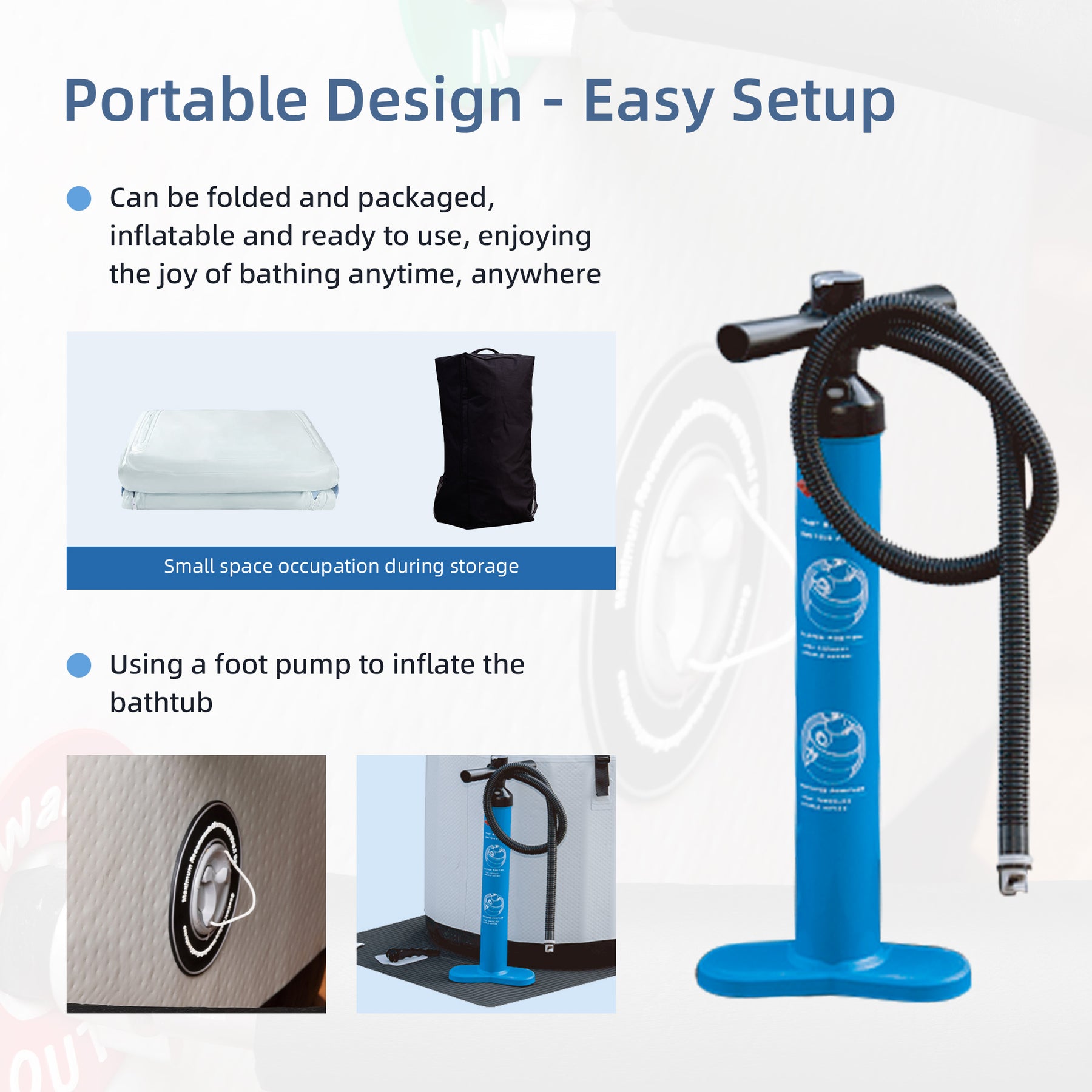 Portable & Space-Saving: Inflatable tub folds for storage or transport.